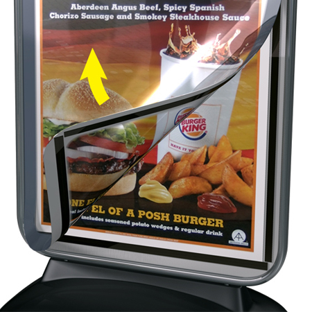 Stainless steel tamper proof fixings retain poster cover at the top and enable ease of poster change by one person.