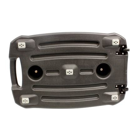 Unique water-fillable HDPE base with built in wheels.